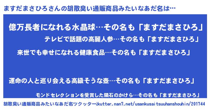 | ヘコむあだ名 | 『ますだまさひろ(爆)』『ますにゅー』 |