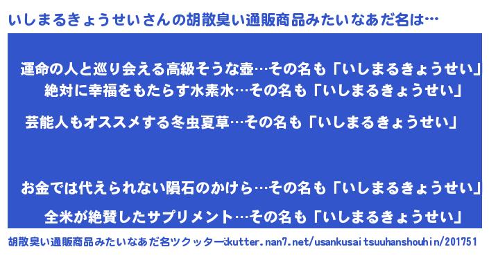 | 意味不明あだ名 | 『自称いしまるきょうせい』 |