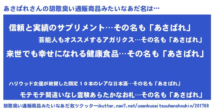 | ヘコむあだ名 | 『あさばれ(笑)』『あさお』 |