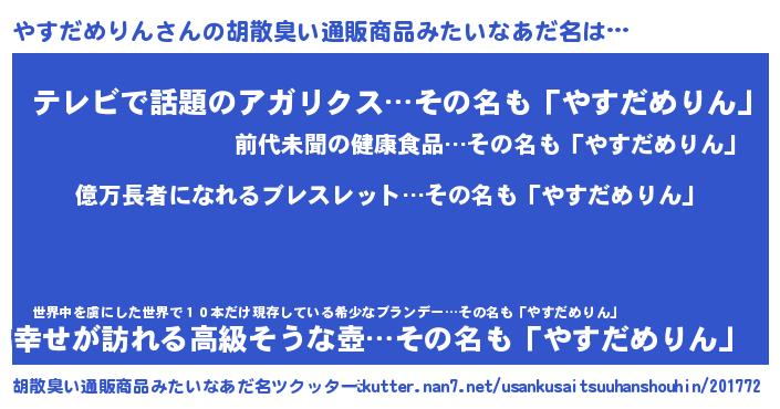| ヒーロー風カッコイイあだ名 | 『スーパーヤスダメリン』『仮面ヤスダー』 |