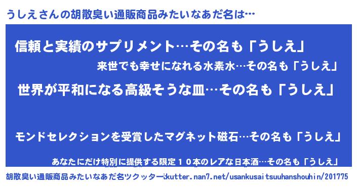 | 意味不明あだ名 | 『うしえフォーエバー』『永久保存うしえ』 |