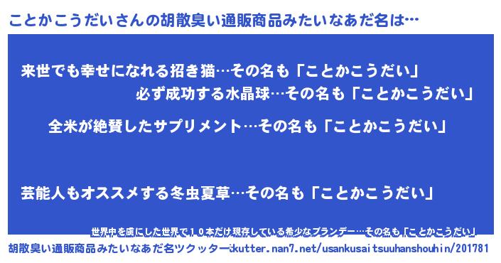 | 意味不明あだ名 | 『とにかく怪しいことかこうだい』 |