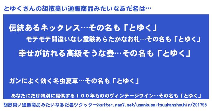 | ヘコむあだ名 | 『牛乳』『とゆぷりん』『とゆふぇ~』 |