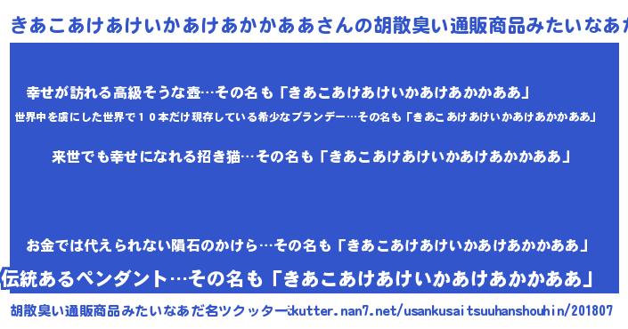 | 可愛いあだ名 | 『きあこあけあけいかあけあかかああママ』 |