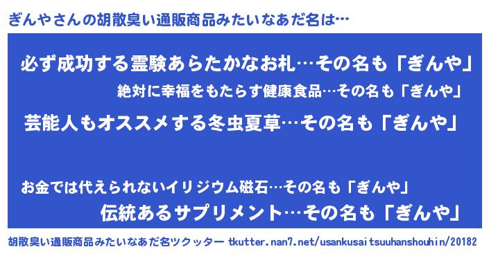 | 恥ずかしいあだ名 | 『ギンヤデラックス』『プリティーぎんや』 |