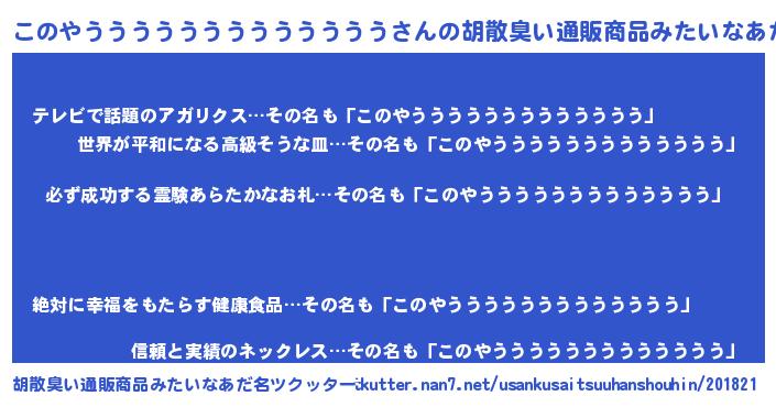 | 女子向けラノベタイトル風あだ名 | 『(仮)このやうううううううううううううのやんごとなき事情』 |