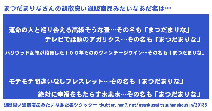| 料理風あだ名 | 『まつだまりなのカルパッチョ風』 |