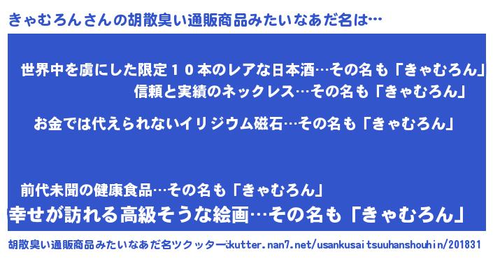 | 意味不明あだ名 | 『眠気覚ましガムきゃむろん味』 |