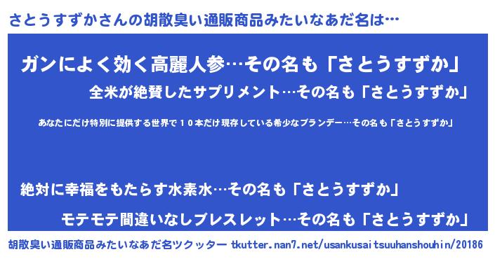 | 欧米人風あだ名 | 『ダレノガレさとうすずか』 |