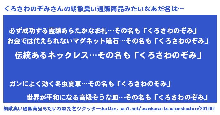 | 意味不明あだ名 | 『とにかく怪しいくろさわのぞみ』 |