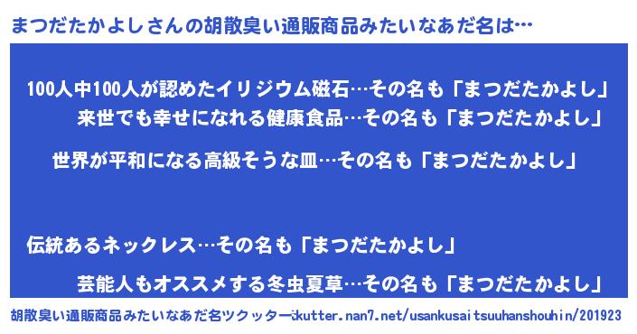 | 意味不明あだ名 | 『もやし科まつだたかよし属』 |
