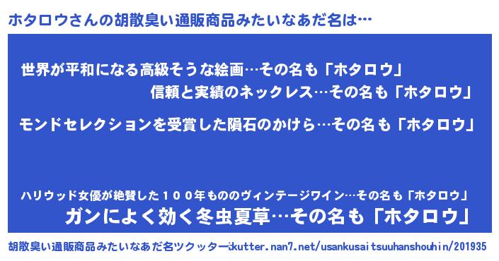 | 男性向けラノベタイトル風あだ名 | 『ノーゲーム・ノーホタロウ』 |