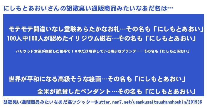 | 意味不明あだ名 | 『住所不定無職にしもとあおい(85歳)』 |