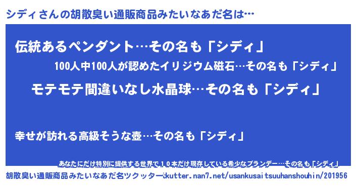 | 女子向けラノベタイトル風あだ名 | 『シディ姫と円卓の騎士』 |