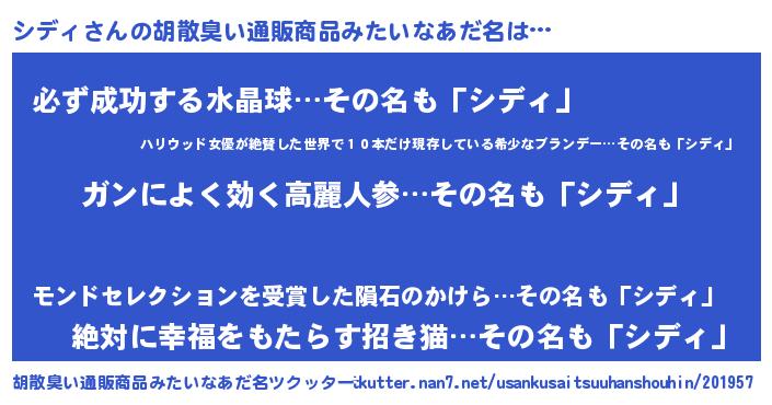 | 意味不明あだ名 | 『自称シディ』『ペロリンシディ』 |