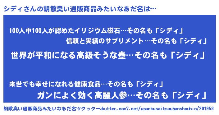 | 意味不明あだ名 | 『シディフォーエバー』『自称シディ』 |