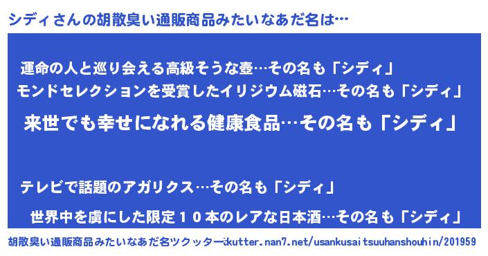 | ヘコむあだ名 | 『シディ(笑)』『酢こんぶ』 |