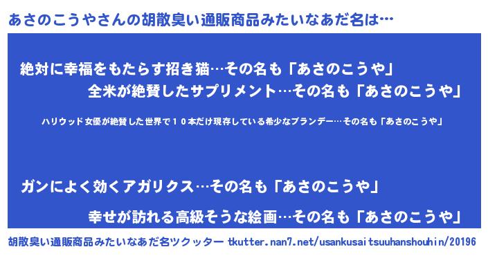 | 意味不明あだ名 | 『住所不定無職あさのこうや(95歳)』 |