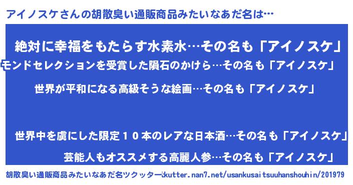 | ヘコむあだ名 | 『なまこ酢』『アイノスケ(爆)』 |