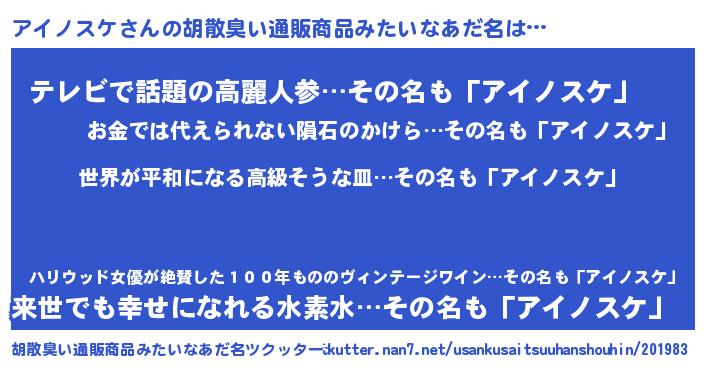 | 意味不明あだ名 | 『アイノスケフォーエバー』 |