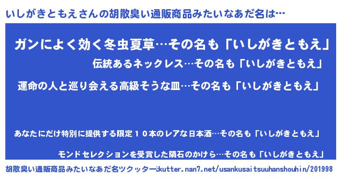 | 肩書あだ名 | 『いしがきともえ国家主席』 |