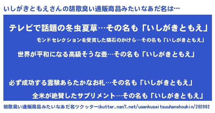 | ファンタジー風あだ名 | 『エターナルイシガキトモエー』 |