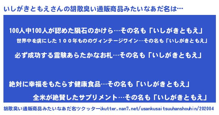 | 欧米人風あだ名 | 『マイケルいしがきともえ』 |