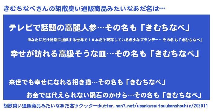 | ヘコむあだ名 | 『つくし』『きむちなべ(小並感)』 |