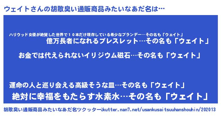 | ヘコむあだ名 | 『ウェイト(苦笑)』『ウェっふぃ~』 |