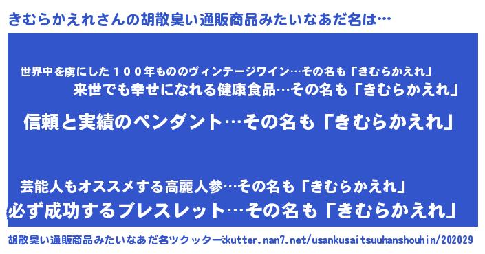 | 意味不明あだ名 | 『とにかく怪しいきむらかえれ』 |