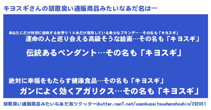 | 意味不明あだ名 | 『とにかく怪しいキヨスギ』 |