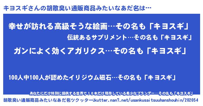 | 意味不明あだ名 | 『自称キヨスギ』『キヨスギフォーエバー』 |