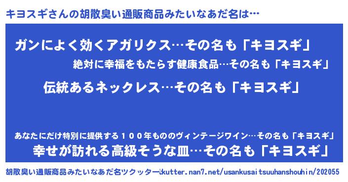 | 意味不明あだ名 | 『とにかく怪しいキヨスギ』 |