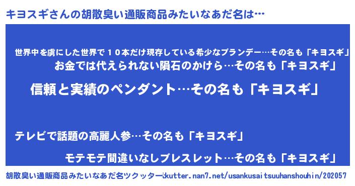 | 意味不明あだ名 | 『とにかく怪しいキヨスギ』 |