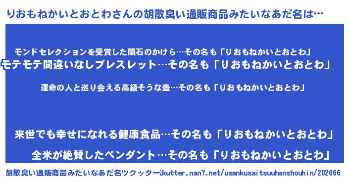 | ファンタジー風あだ名 | 『エターナルリオモネカイトオトワー』 |