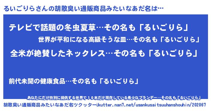 | 意味不明あだ名 | 『とにかく怪しいるいごりら』 |