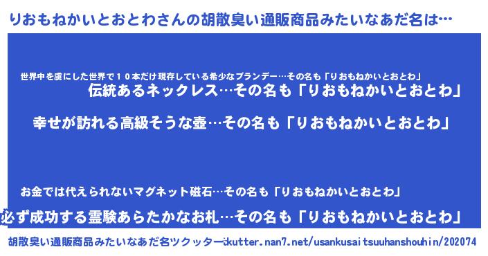 | 男性向けラノベタイトル風あだ名 | 『緋弾のリオモネカイトオトワ』 |