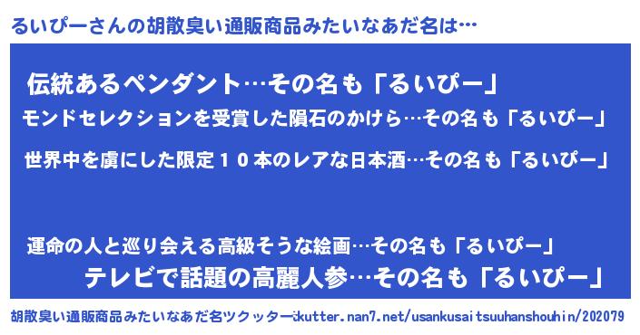 | 意味不明あだ名 | 『住所不定無職るいぴー(40歳)』 |