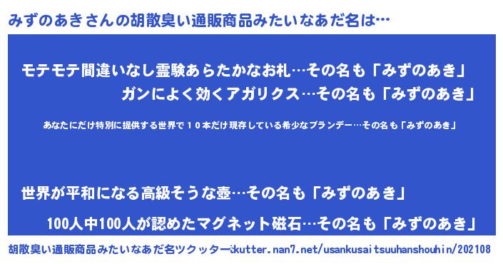 | 意味不明あだ名 | 『住所不定無職みずのあき(89歳)』 |