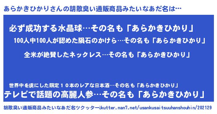 | ポケモン風あだ名 | 『アラキング』『ヒアラカキヒカリ』 |