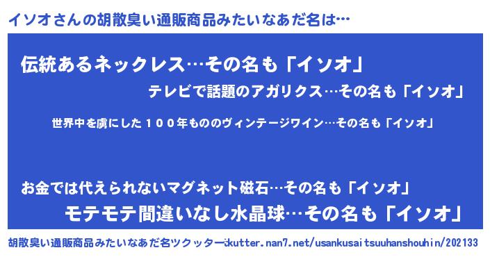 | 意味不明あだ名 | 『住所不定無職イソオ(9歳)』『自称イソオ』 |
