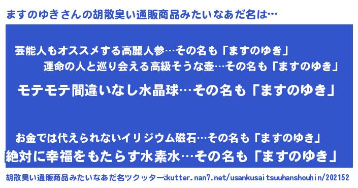 | ヘコむあだ名 | 『ますにゅー』『ますのゆき(笑)』 |