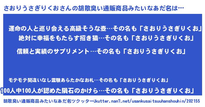 | 意味不明あだ名 | 『とにかく怪しいさおりうさぎりくお』 |
