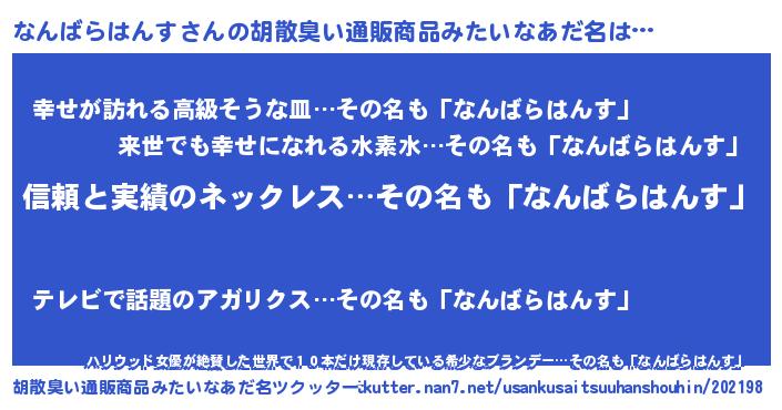 | 意味不明あだ名 | 『とにかく怪しいなんばらはんす』 |