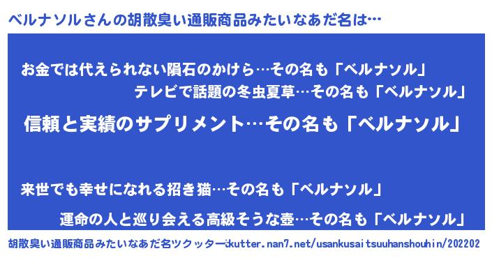 | 意味不明あだ名 | 『とにかく怪しいべルナソル』 |