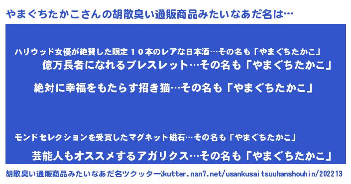 | ヘコむあだ名 | 『やまぐちたかこ(笑)』『やまにゅー』 |