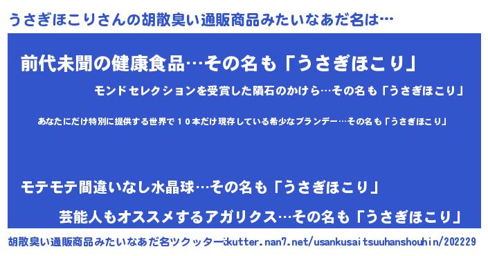| ヒーロー風カッコイイあだ名 | 『仮面ウサダー』『ネオウサギホコリ』 |