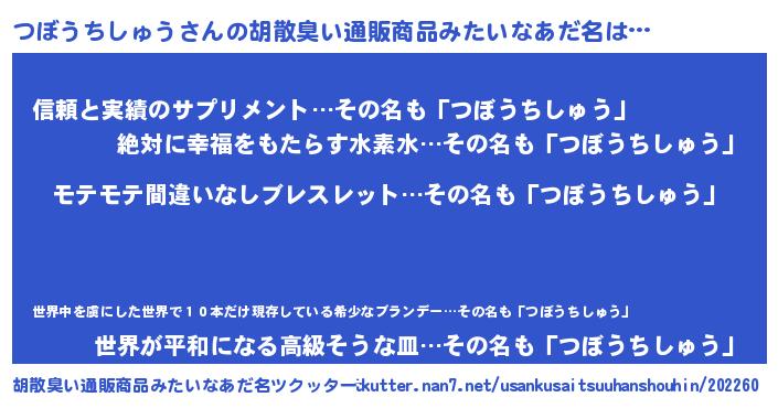 | ヒーロー風カッコイイあだ名 | 『スーパーツボウチシュウ』 |