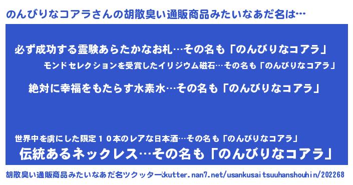 | 意味不明あだ名 | 『永久保存のんびりなコアラ』 |