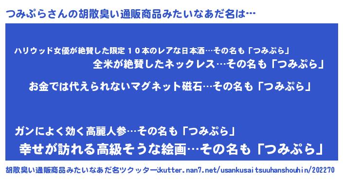 | 欧米人風あだ名 | 『ダニエルつみぷら』 |
